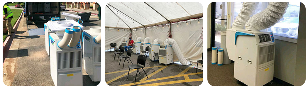 结合户外帐篷“空间狭小、无安装条件、需快速降温”的核心需求,项目方采用冬夏SAC-35移动式冷气机将设备直接放置在帐篷内部,同时搭配延长散热管,将设备运行产生的热气全部排到篷外。